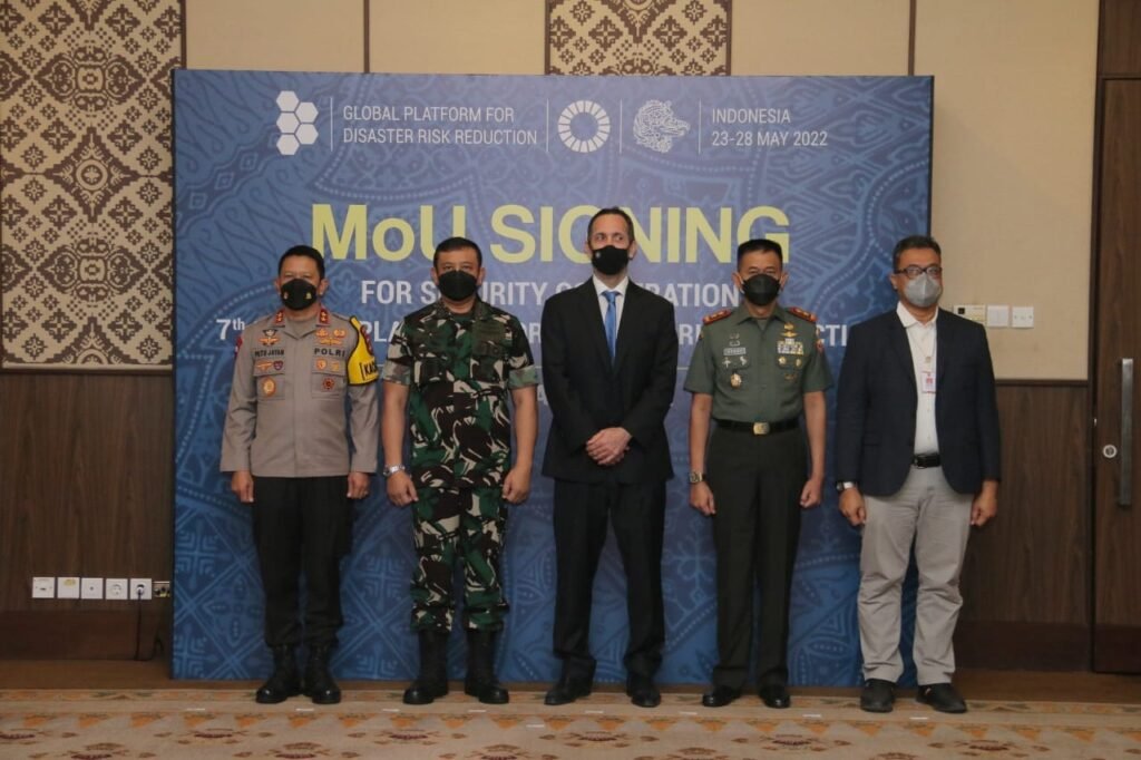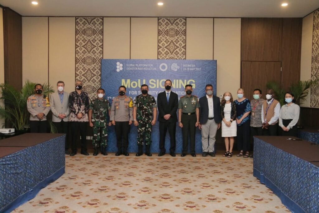Penandatanganan MoU FSC dan UNDSS ESC yang ditujukan untuk GPDRR ke 7 Tahun 2022 tersebut dilakukan oleh Pangkogabwilhan II Marsekal Madya TNI Imran Baidirus, S.E., Perwakilan dari UNDSS Event Security Coordinator Mr. Sassan Rahimi, serta Pangdam IX/Udayana Mayjen TNI Sonny Apriyanto, S.E., M.M., dan Kapolda Bali Irjen. Pol. Drs. Putu Jayan Danu Putra, S.H., M.Si.