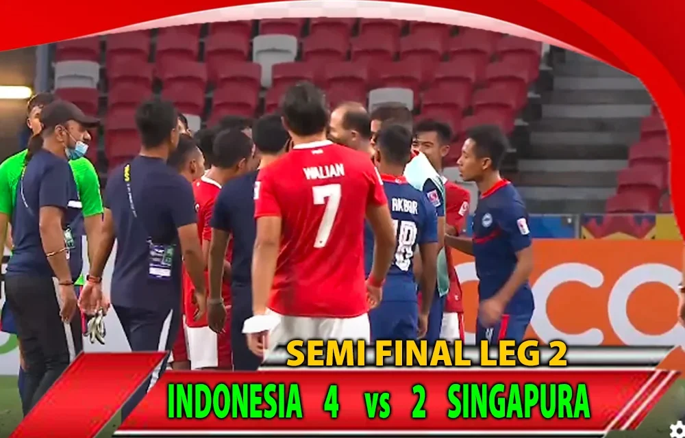 “Pertandingan Semifinal Piala AFF 2020, semakin panas, jual beli serangan terus terjadi, banyak insiden yang tidak bisa terbendung, sampai-sampai wasit Qasim Matar Ali Al Hatmi, mengeluarkan 3 kartu merah untuk pemain Timnas Singapura.
