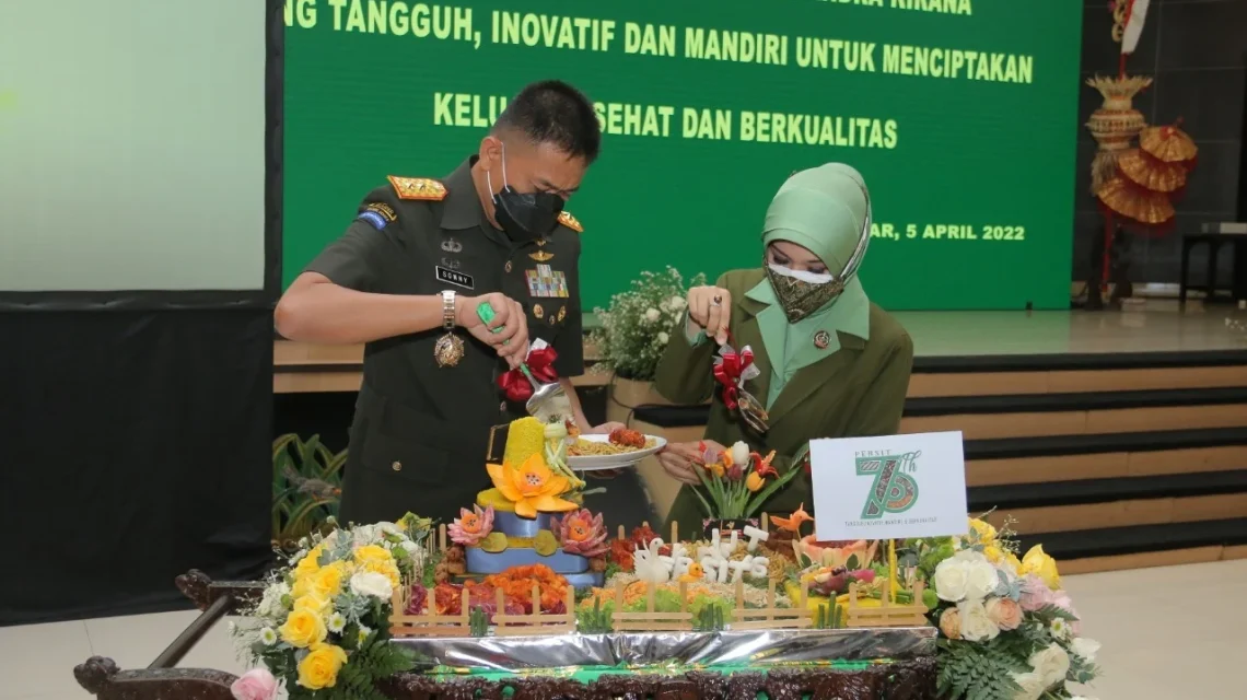 Denpasar, “TABLOIDNUSANTARA” – Persit Kartika Chandra Kirana PD IX/Udayana menggelar syukuran dalam rangka hari jadi Persit Kartika Chandra Kirana ke-76, yang dihadiri Pangdam IX/Udayana Mayjen TNI Sonny Aprianto S.E, M.M., selaku Pembina Persit KCK PD IX/Udayana, di Aula Udayana Makodam IX/Udayana, Denpasar, pada Selasa (5/4/2022).