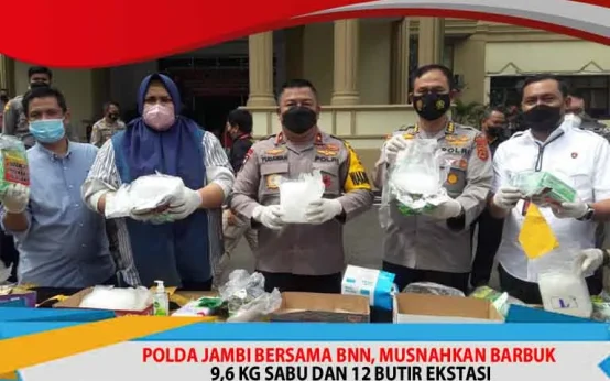 POLDA JAMBI BERSAMA BNN, MUSNAHKAN BARBUK 9,6 KG SABU DAN 12 BUTIR EKSTASI KRIMINAL NASIONAL Tabloid Nusantara 4 tahun ago 405 0 POLDA JAMBI BERSAMA BNN, MUSNAHKAN BARBUK 9,6 KG SABU DAN 12 BUTIR EKSTASI Polda Jambi, Bersama Bnn Serta Satuan Jajaran Bawah Gencar Dalam Memberantas Barang Haram, Narkotika, Sabu-Sabu Dan Sejenis.