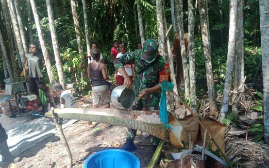 MENGOLAH SAGU BABINSA IKUT MEMBANTU KEPALA SUKU DI WILAYAH BIANAAN