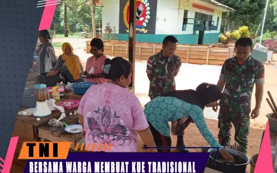 JELANG RAMADHAN, SATGAS 123/RAJAWALI AJARKAN MEMBUAT MAKANAN TRADISIONAL KEPADA IBU-IBU DI PERBATASAN