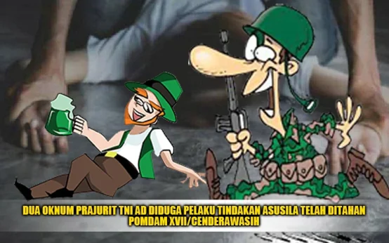 DUA OKNUM PRAJURIT TNI AD DIDUGA PELAKU TINDAKAN ASUSILA TELAH DITAHAN POMDAM XVII/CENDERAWASIH KRIMINAL NASIONAL Tabloid Nusantara 4 tahun ago 268 0 DUA OKNUM PRAJURIT TNI AD DIDUGA PELAKU TINDAKAN ASUSILA TELAH DITAHAN POMDAM XVII/CENDERAWASIH