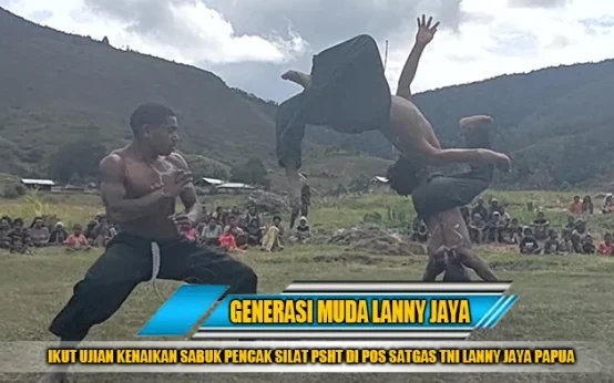 GENERASI MUDA LANNY JAYA ANTUSIAS IKUTI UJIAN KENAIKAN SABUK PENCAK SILAT PSHT DI POS SATGAS TNI
