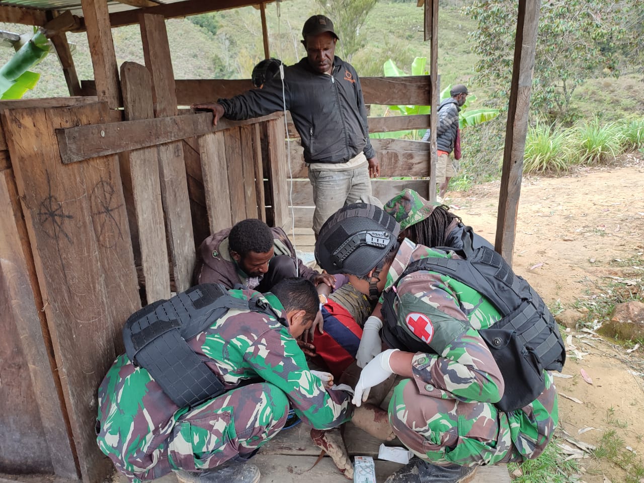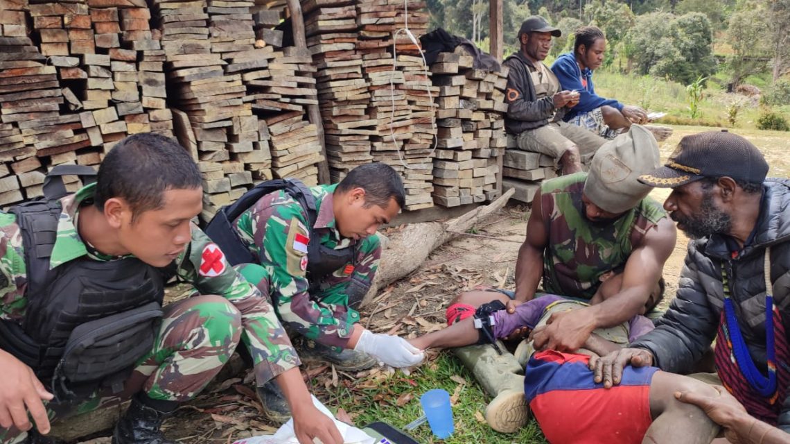 LANNY JAYA, “TABLOIDNUSANTARA.COM” – Aksi peduli kemanusiaan kembali ditunjukkan Prajurit Satgas Yonif MR 412 Kostrad di daerah penugasan, kali ini dengan memberikan pertolongan pertama kepada warga yang terluka akibat terkena kampak saat mencari kayu di hutan di wilayah Kampung Oka Distrik Malagayneri Kabupaten Lanny Jaya, Papua.