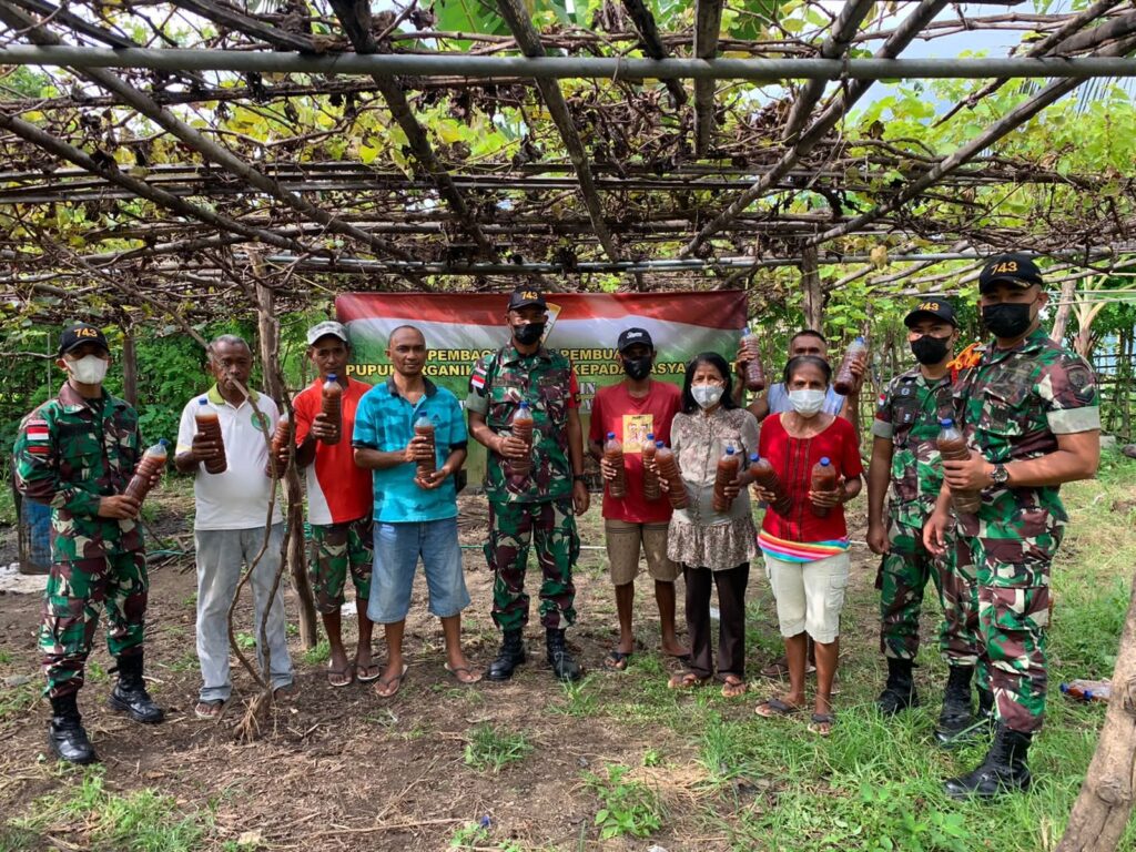 Dankipam I Lettu Inf Nyoman Kalinu mengatakan di tengah situasi Pandemi Covid-19 yang berkepanjangan beberapa kelompok petani anggur di Desa Silawan sangat kesulitan membeli pupuk kimia. Oleh karena itu, Pos Motaain membuat pupuk organic cair untuk dibagikan sekaligus memberikan pelatihan kepada masyarakat.