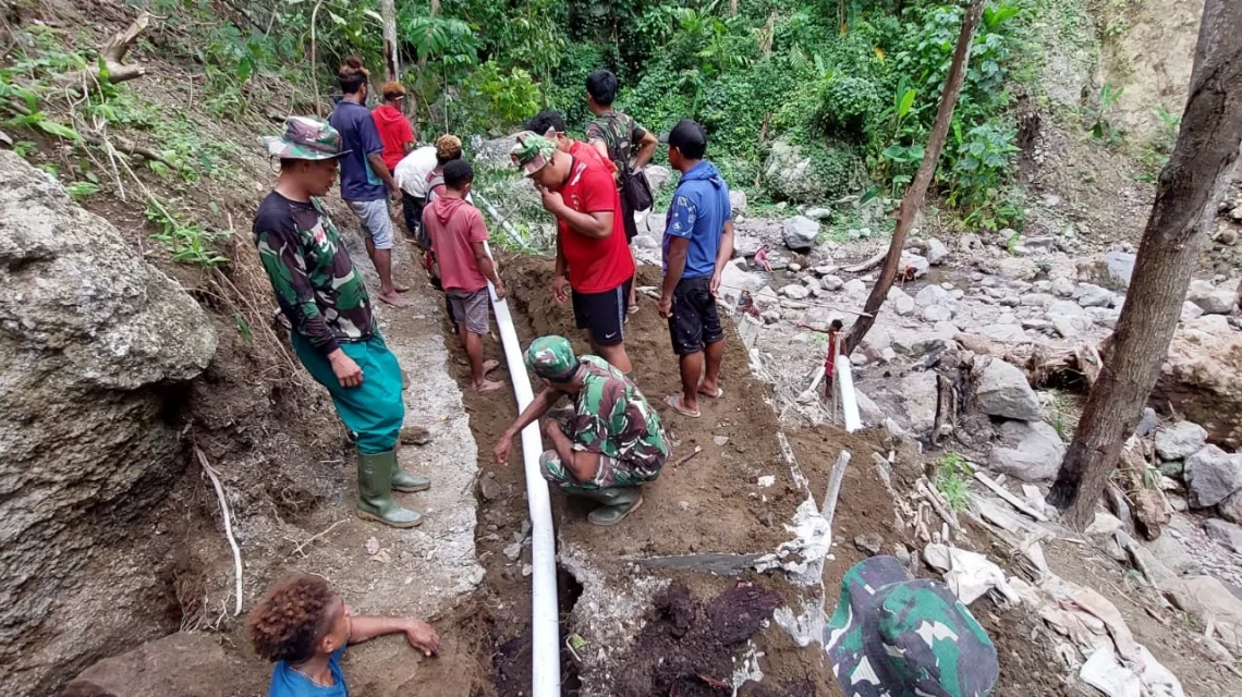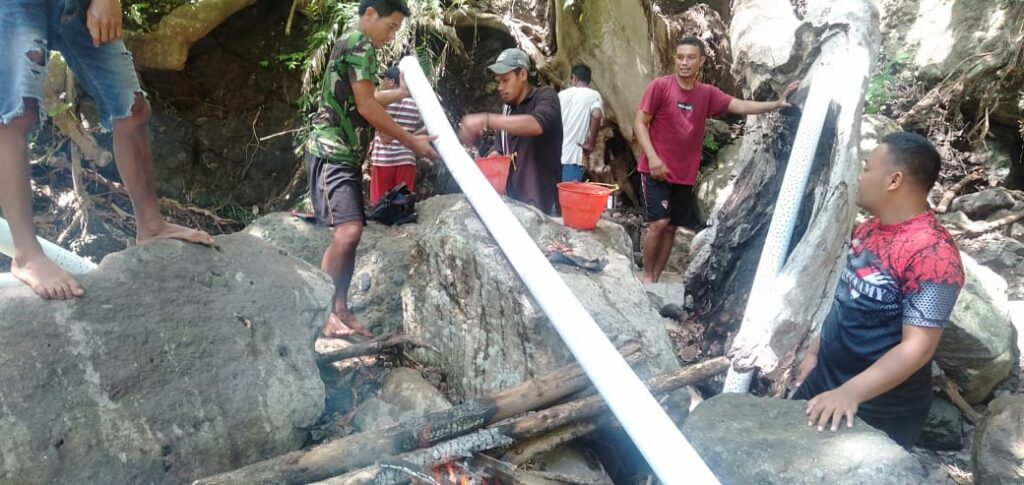 TNI DAN WARGA KEBUT PEKERJAAN POMPA HIDRAM DI DESA LEKOM