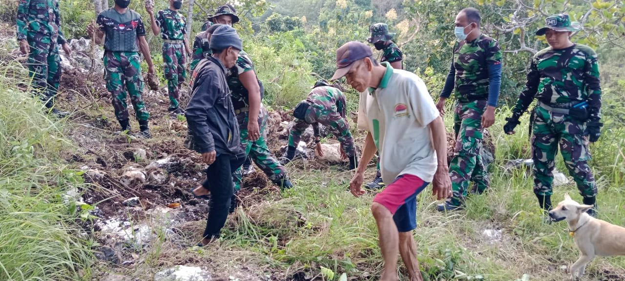 Seperti halnya hari ini, kakek berusia 73 tahun itu, seakan tidak mau kalah dengan Satgas TMMD dan warga lain untuk turut berpartisipasi di lokasi, Sabtu (28/05/22).
