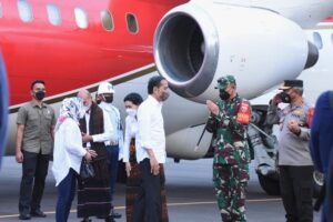 Ende, “TABLOIDNUSANTARA” – Bersama Forkopimda Provinsi NTT, Pangdam IX/Udayana Mayjen TNI Sonny Aprianto, S.E., M.M., menyambut langsung kedatangan Presiden RI Ir. H. Joko Widodo beserta Ibu Iriana Joko Widodo, di Bandara H. Hasan Aroeboesman Ende, pada Selasa (31/5/2022).