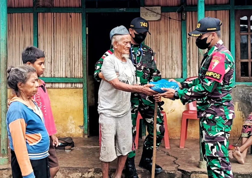 Hal ini untuk menumbuhkan kepedulian kepada sesama mulai dari hal-hal yang kecil dan sederhana, seperti yang dilakukan oleh Prajurit Satgas Pamtas RI-RDTL Yonif 743/PSY Pos Asumanu Mengunjungi dan memberikan sembako kepada Masyarakat Binaannya yang sakit di Desa Asumanu, Kecamatan Raihat, Kabupaten Belu, pada Senin (31/01/2022).